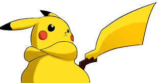 -Anime: Pikachu, o Pokémon Rato. A forma evoluída de Pichu. Pode gerar ataques elétricos de "bolsas" elétricas, localizadas em suas bochechas.